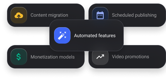 İçeriklerinizin parasallaştırılmasını kolaylaştırmak için tasarlanmış, zamandan tasarruf etmenizi sağlayacak pek çok özellik sağlamaktayız. Kendini işine adamış ekibimiz düzenleme ve yayınlama sürecinde size destek olmaya hazırdır, böylece daha fazla içerik üretmeye odaklanabilirsiniz.